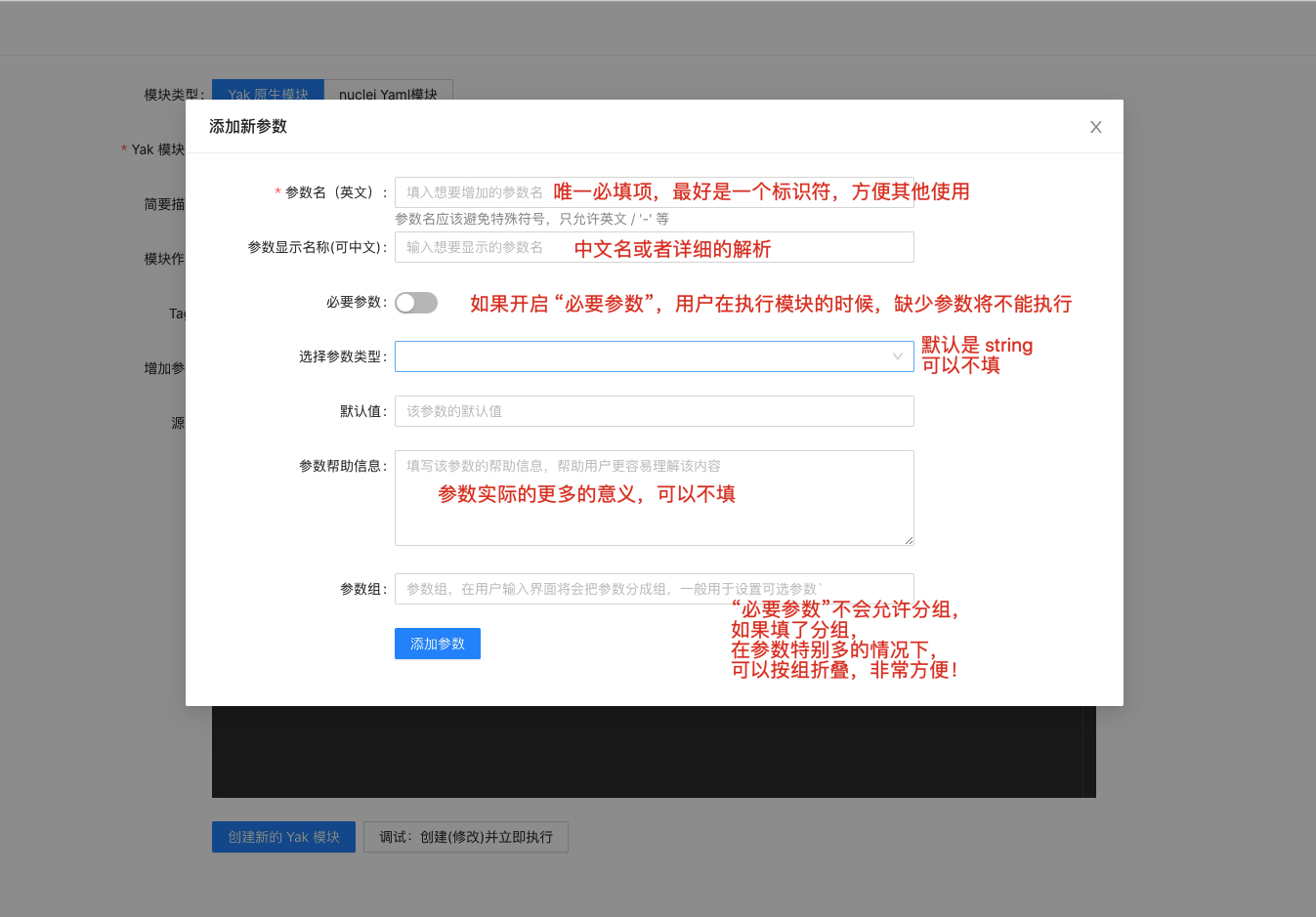配置参数在 Yakit 中并不需要用户单独去写插件参数的配置文件,我们提供了图形化的操作方法: