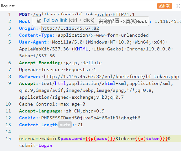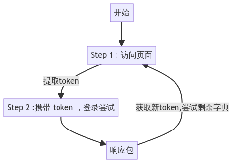 注意到除了用户和密码之外,还存在一个token的post参数,这是一个csrf token,它主要是用来防止CSRF攻击的,但是这也给我们的爆破增加了一定的难度,因为每次爆破都需要使用一个新的token。那么在这种情况下我们应该如何爆破呢?