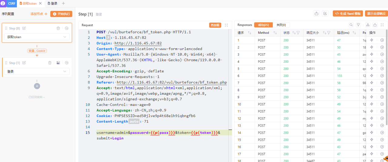 这样,第一个数据包就会被发送 25 次,每次使用一个字典中的密码进行爆破。