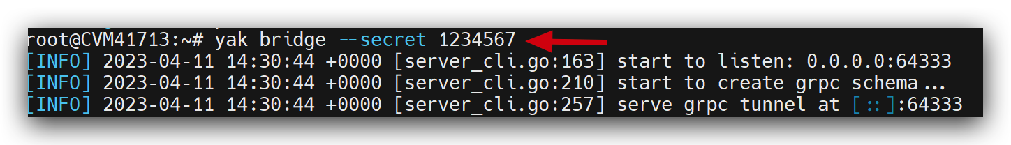 docker run -d --rm --net=host v1ll4n/yak-bridge yak bridge --secret [your-awesome-password-for-u-bridge]一条命令即可启动一个 yak bridge 服务器