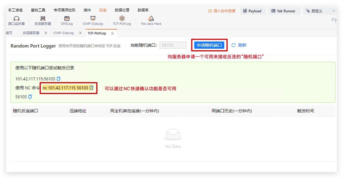Yakit的反连服务器使用协议端口复用技术,同时在一个端口同时实现 HTTP / RMI / HTTPS 等协议的反连,可用于手工漏洞检测。