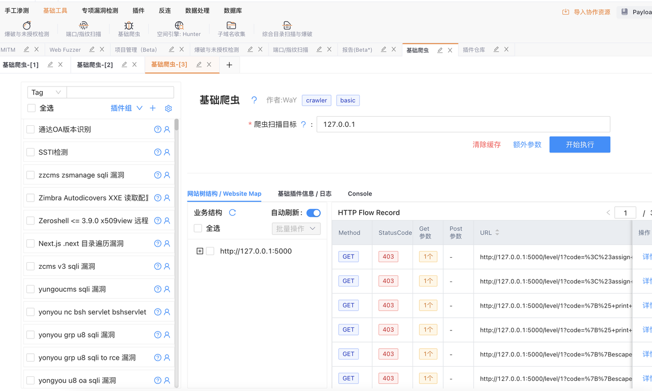 漏洞检测:基础爬虫会使用爬取到的信息根据加载的相关的Yakit插件进行漏洞扫描,并根据扫描结果提供相应的漏洞报告。