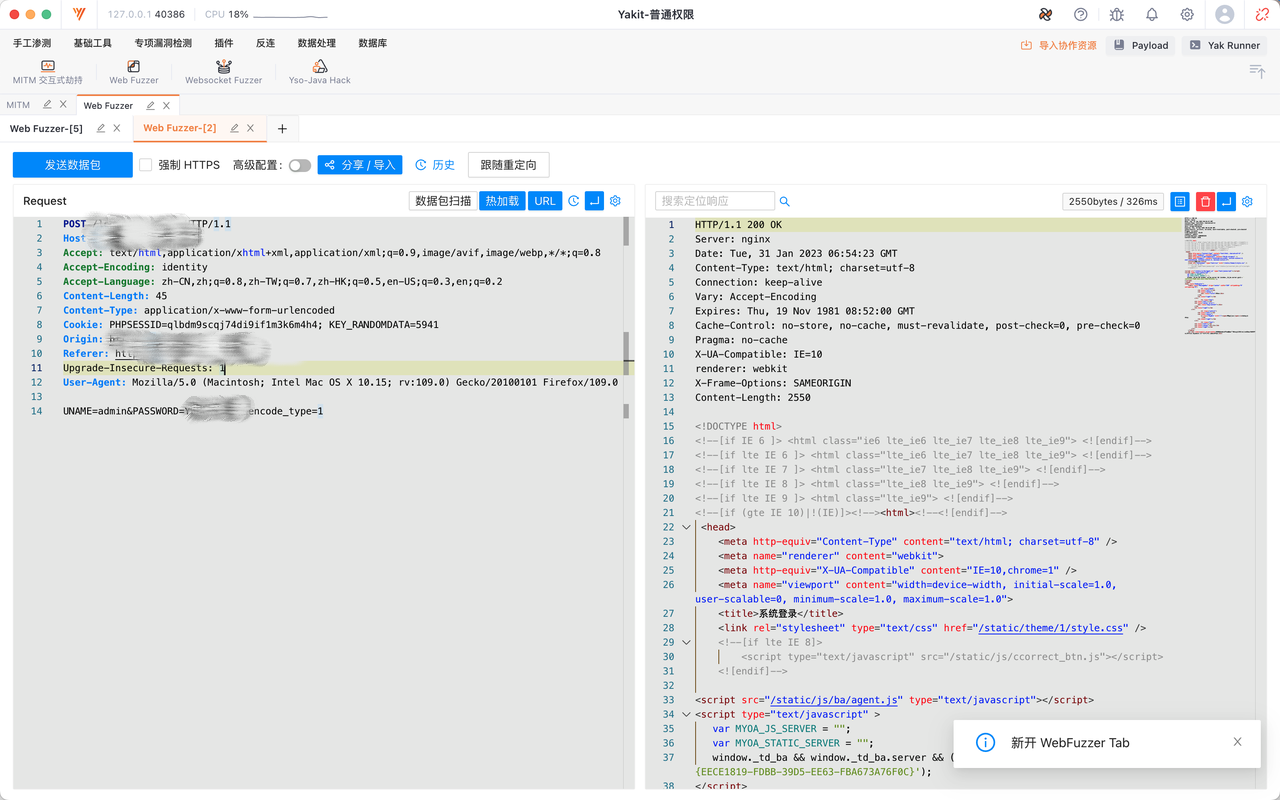 这里以通达oa的任意用户登录作例子 使用yakit抓取登录的数据包